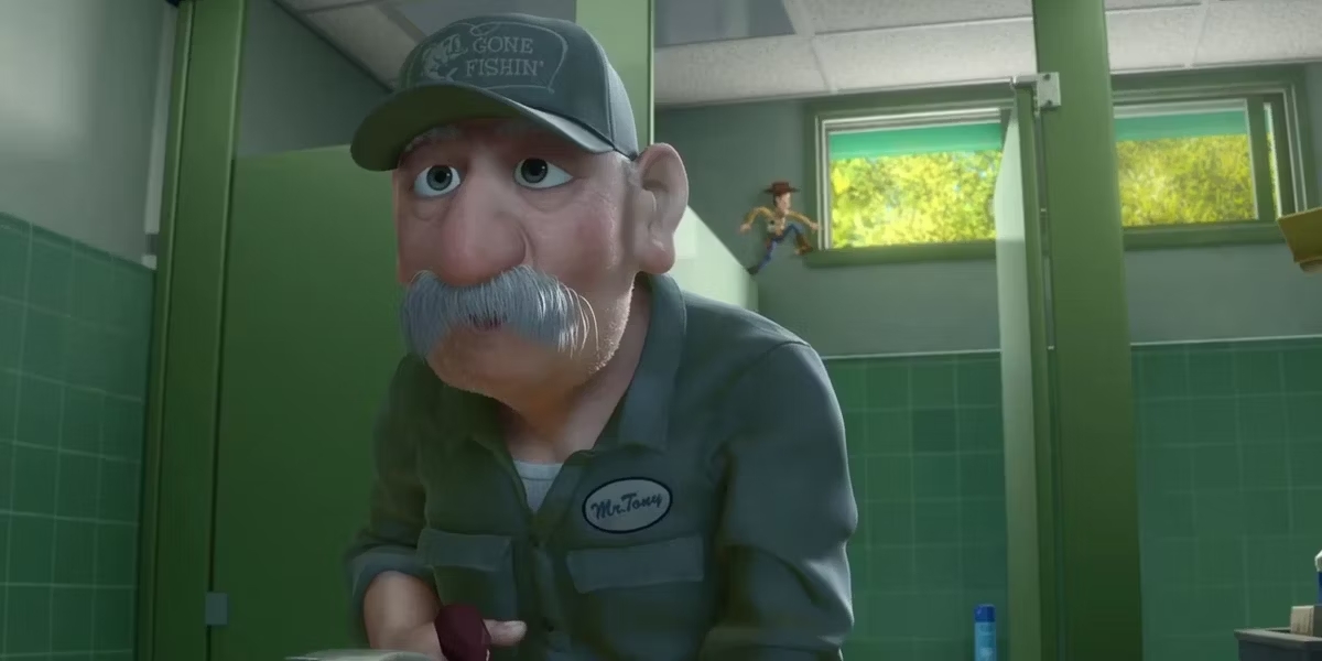 Y probablemente aquellos que tengan vista de águila notaron que el nombre del conserje de la guardería Sunnyside también es Tony, quien curiosamente, pasa su única escena en Toy Story 3 viéndose en un espejo sin notar a Woody escapando por la ventana del baño. Curiosamente, para hablar con su amigo imaginario, Danny hace exactamente lo mismo, mirarse en el espejo… Las referencias a The Shining en Toy Story son pequeñas pero increíbles.