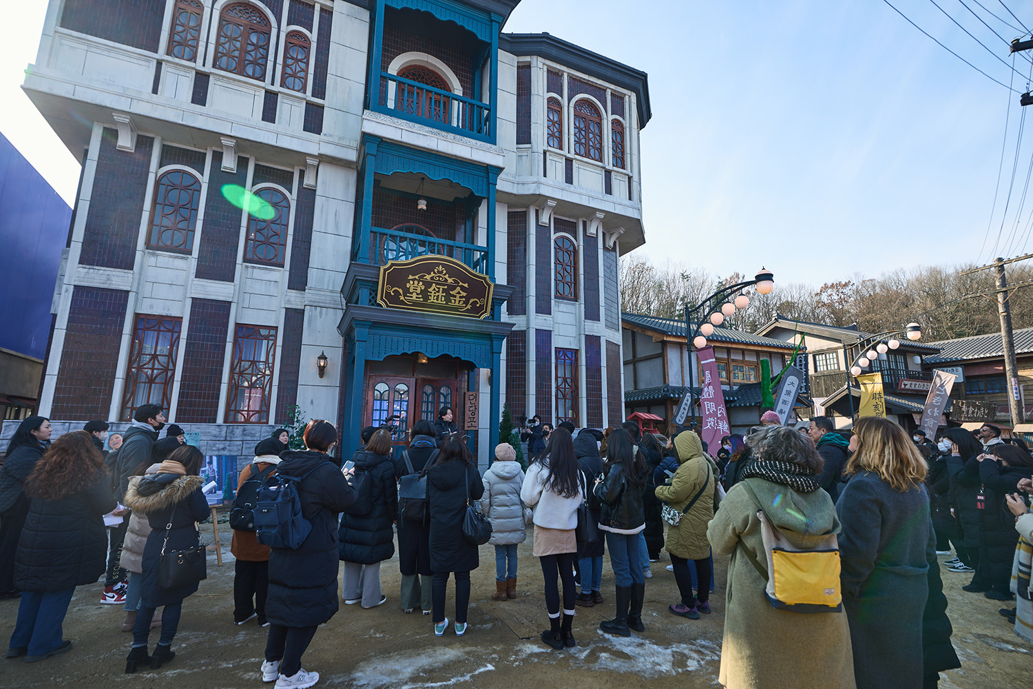 También, en pleno invierno, recorrimos las calles que el equipo de producción construyó para presentarnos un pedazo de Gyeongseong. Les tomó cuatro meses preparar la calle y otros cinco para construirla entre locales y puestos, terrazas, restaurantes y más.