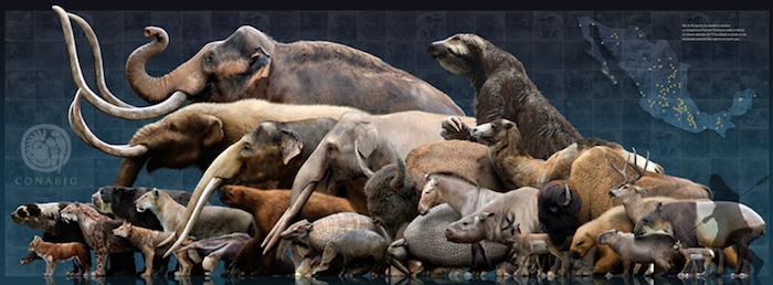 Es fascinante pensar que hace unos 12 mil años la llamada Cuenca de México se conformaba por varios lagos. Alrededor éstos vivían especies (la mayoría extintas actualmente) como tigres colmillos de sable, dromedarios, llamas y alpacas, armadillos gigantes, megaterios, bisontes, mastodontes y mamuts.