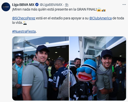 América contó con todo el apoyo de su afición para esta final, incluyendo a, quizá, su más famoso aficionado en este momento. Checo Pérez estuvo en el Estadio BBVA y festejó con todo el golazo de Richard Sánchez que les dio el esperado tricampeonato.