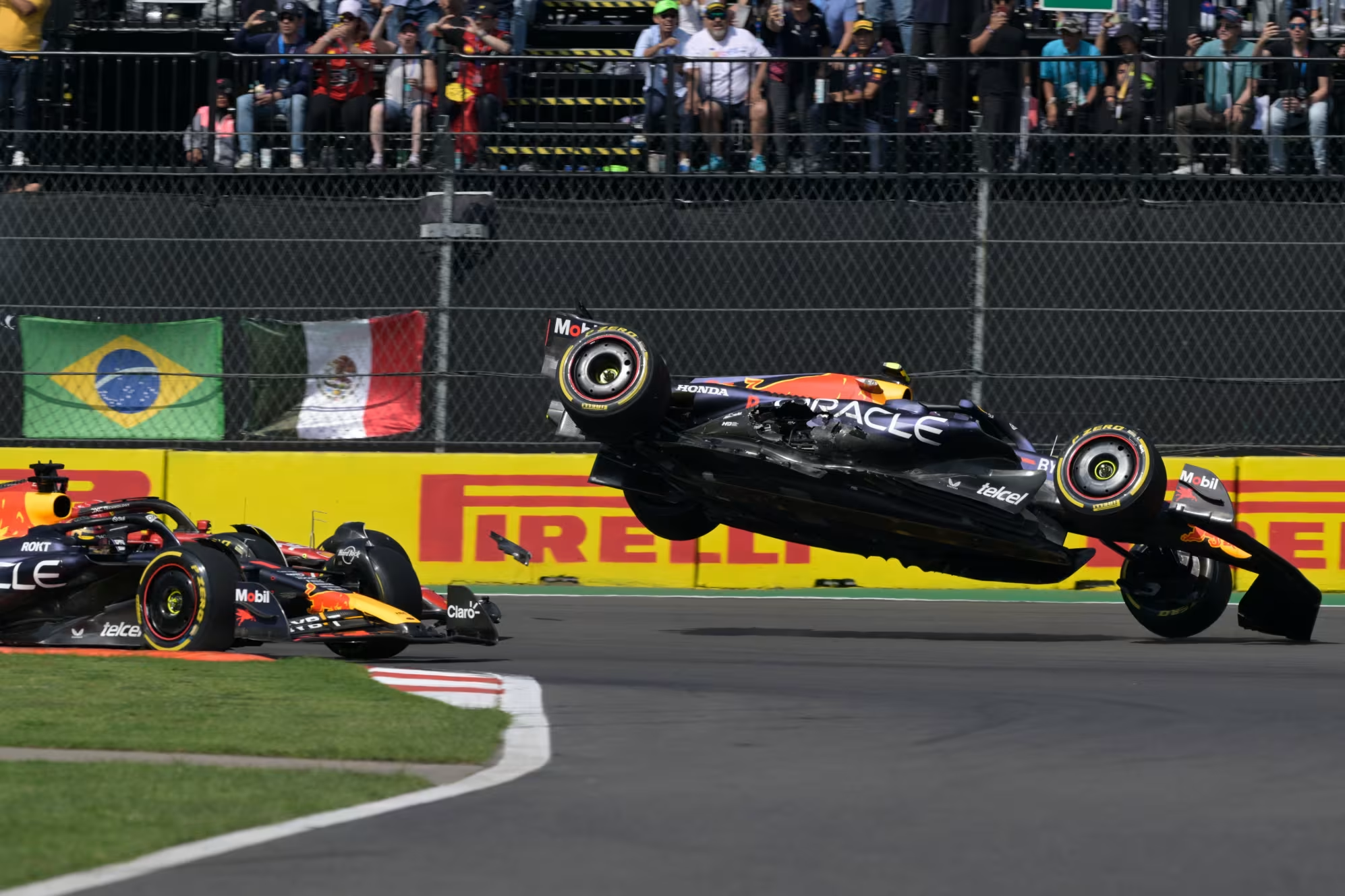 Red Bull ha tenido que desembolsar un total de $3,224,000 dólares en el RB19 de Checo, pues los golpazos que se ha llevado no salen ni con polish. El choque contra Charles Leclerc en la primera curva del Gran Premio de México le salió caro en todos los sentidos al tapatío, además de abandonar la carrera, los daños en su monoplaza son de aproximadamente $320,000.