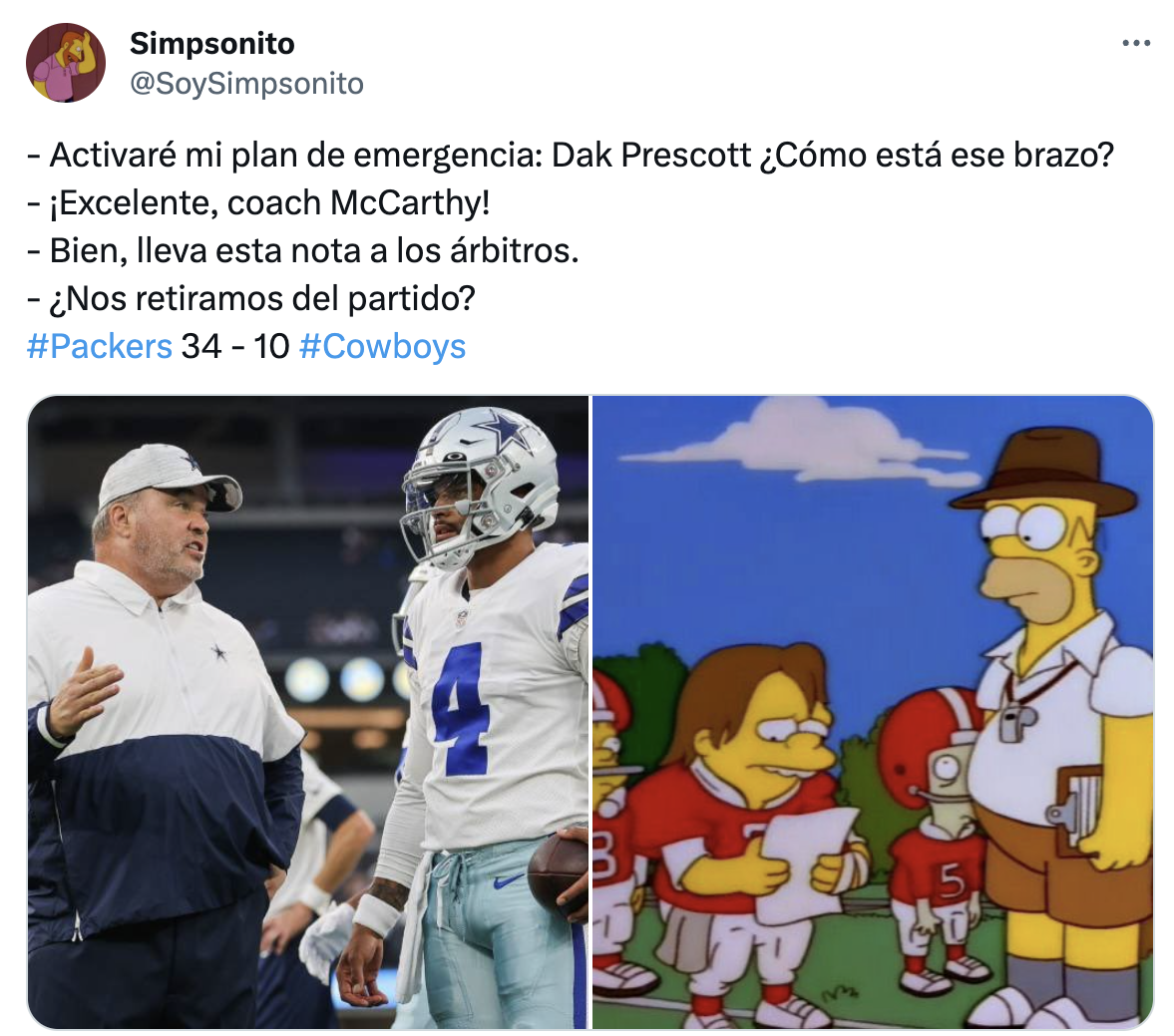 Igual muchos se irán contra Dak Prescott, que es cierto que no tuvo su mejor juego, pero también la defensiva hizo agua ante la ofensiva de los Packers y ante esta situación podría ser que se le cobre factura al head coach de Dallas, Mike McCarthy.