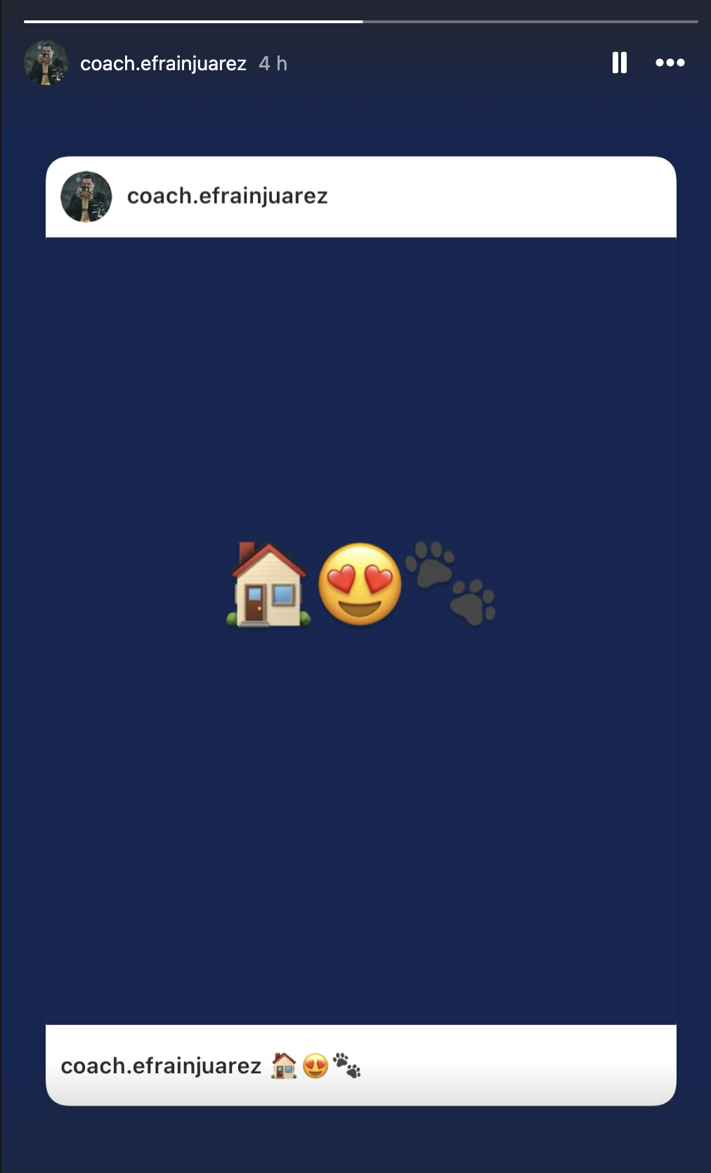 El viernes 20 de febrero, Efraín publicó un mensaje sencillo, pero muy claro. Una casa, una carita con corazones en los ojos y unas huellas, algo que podemos interpretar como ‘El regreso a casa’, su regreso a Pumas.