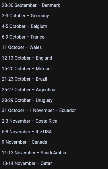 Ojo acá, todas esas fechas están sujetas a cambios, pero si nada raro ocurre, del 15 al 20 de octubre tendremos la Copa del Mundo en México.
