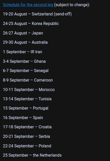 Este sería el calendario de la Copa Mundial entre agosto y noviembre