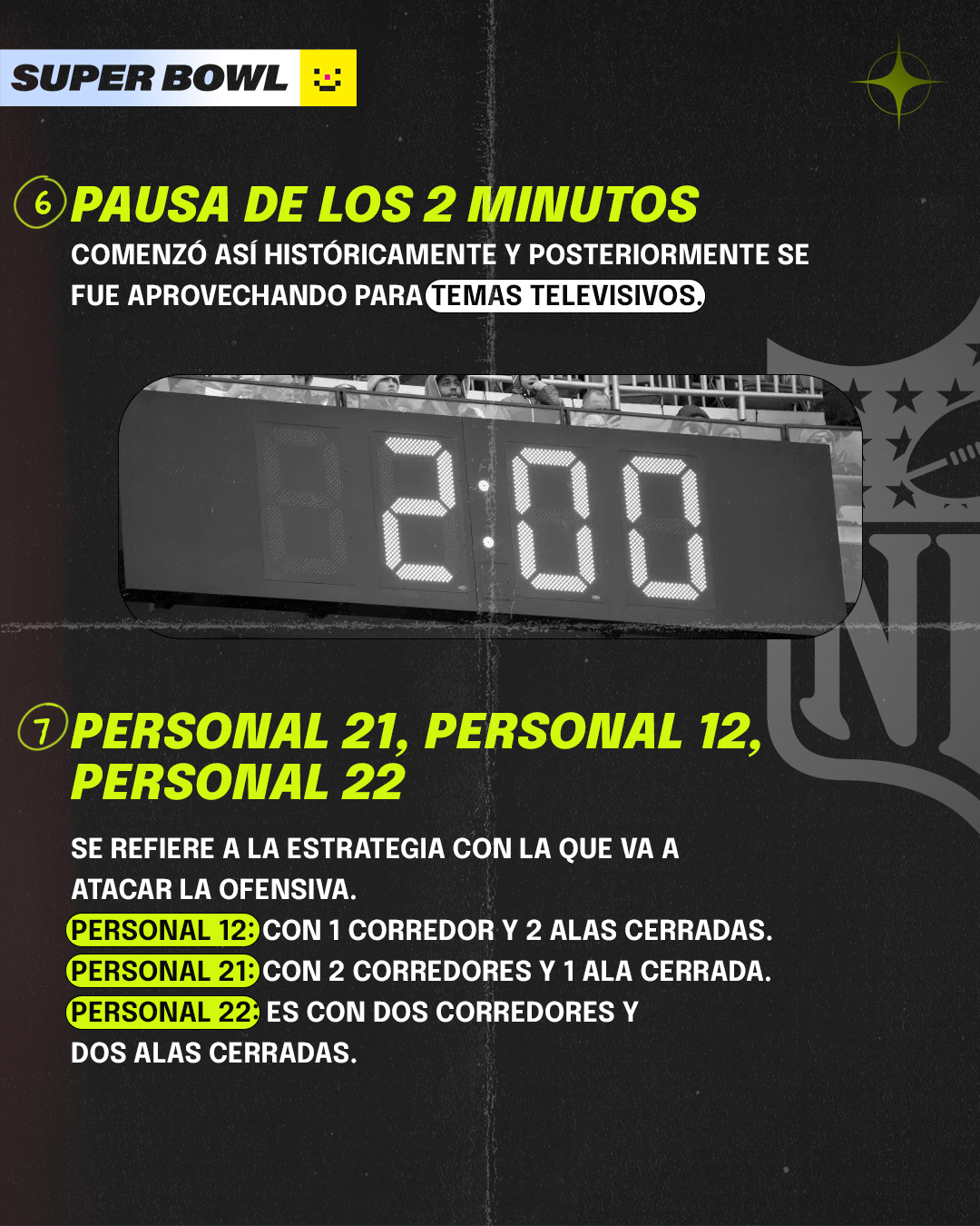 Al final de la postemporada, tenemos a dos campeones de conferencias y son esos dos equipos los que se enfrentan en el Super Bowl, en este caso, para la edición LVIII (58) se enfrentan los Chiefs de Kansas en contra de los 49ers de San Francisco.