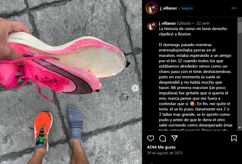 La historia se hizo viral tanto por el mérito de terminar un Maratón como el de la Ciudad de México con un tenis prestado, como porque gracias a eso logró el tiempo para calificar al Maratón de Boston, el cual se corre este 15 de abril (podrás verlo en ESPN y Star+ a las 07:30 horas, por cierto).