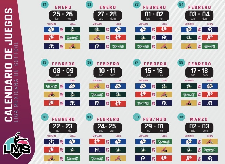 En la liga participarán un total de seis equipos y cada uno tendrá que jugar seis partidos de local y seis de visitante en temporada regular, más los juegos de playoffs y la Serie de la Reina.