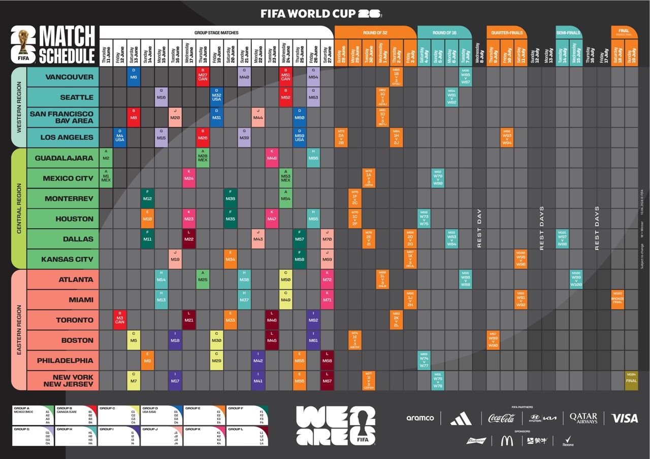 El Mundial 2026 se jugará del 11 de junio al 19 de julio del 2026 y en este lapso se jugarán en total 104 partidos por el nuevo formato con 48 selecciones, el primero en la historia con tantos equipos, dejando atrás el formato de 32 participantes.