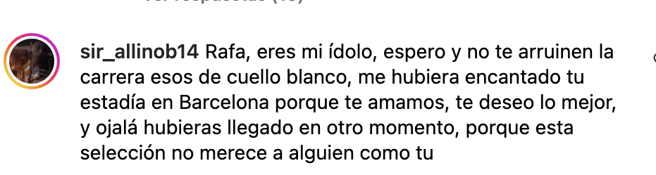 “Me ha sido muy difícil tomar la decisión de dejar el Barcelona Atlétic y emprender un nuevo compromiso. En mi vida nunca me ha gustado estar en una zona de confort. Busco siempre un crecimiento y estos dos años en Barcelona Atlétic me han ayudado a darme cuenta que hay una pasión y una idea que debo seguir puliendo a ese de mucho trabajo (sic)”, indica Rafa en su publicación.