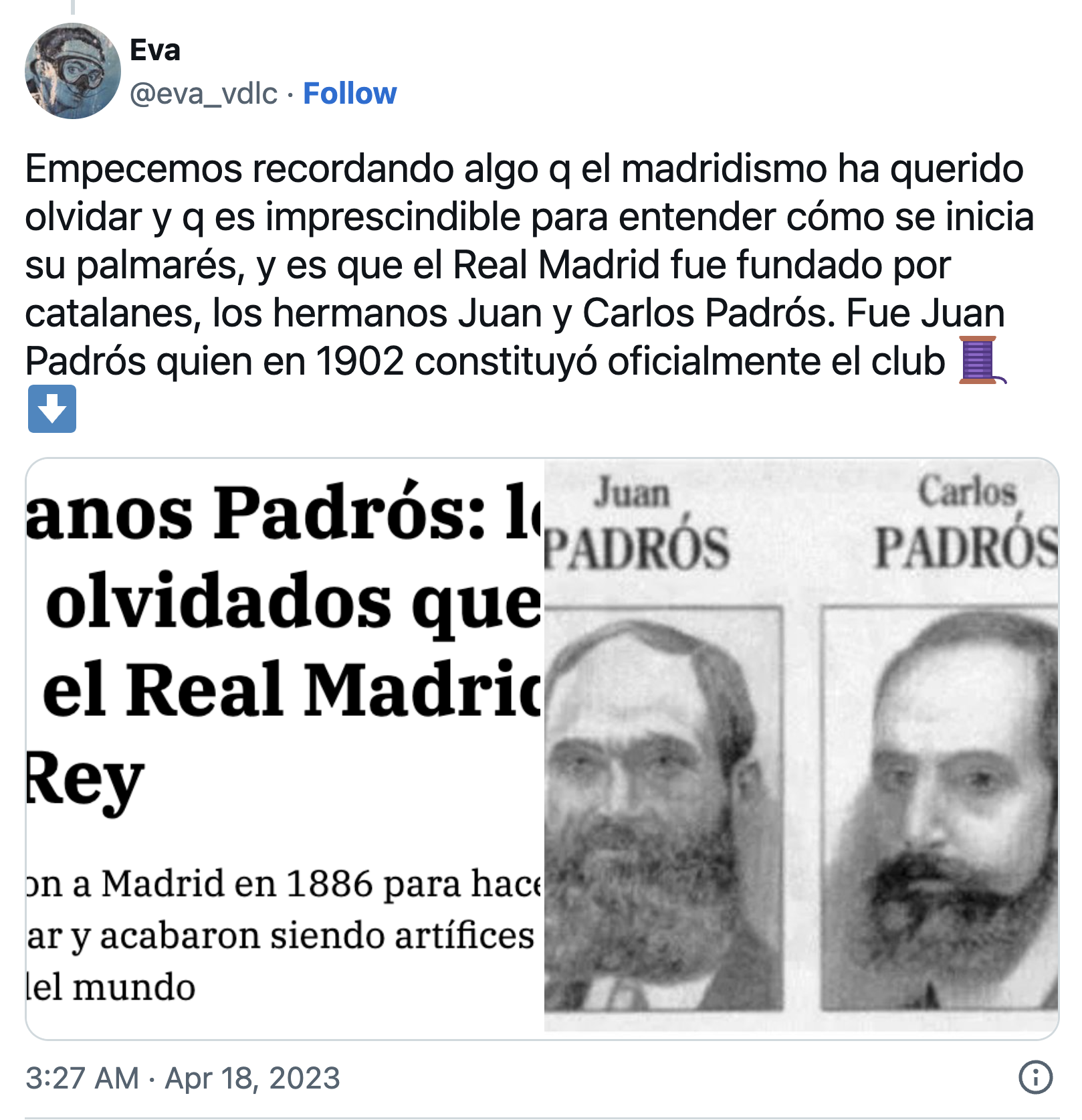 De hecho, el Real Madrid fue manejado por los hermanos Padrós, Juan y su hermano Carlos, varios de sus primeros años.