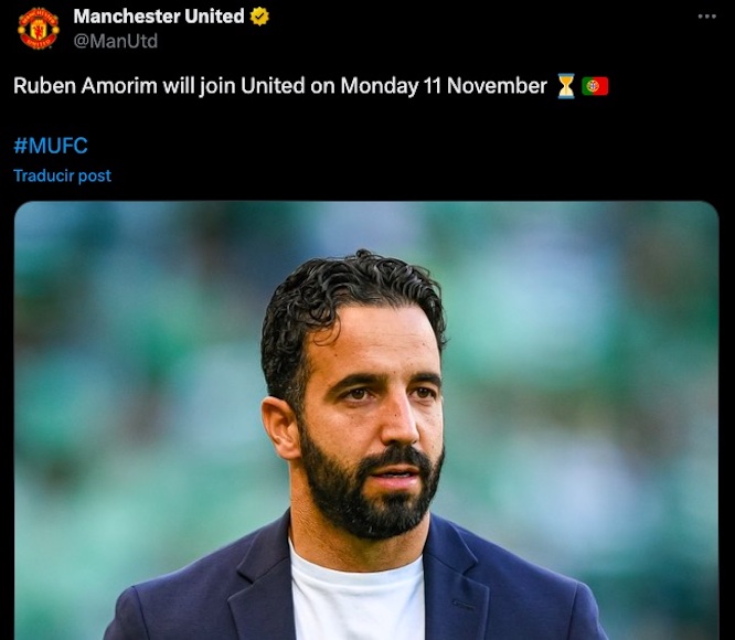 Con un preve anuncio en la lengua nativa de Amorim se dio a conocer la noticia: “Ben-vindo ao Manchester United, Rúbem Amorim”.