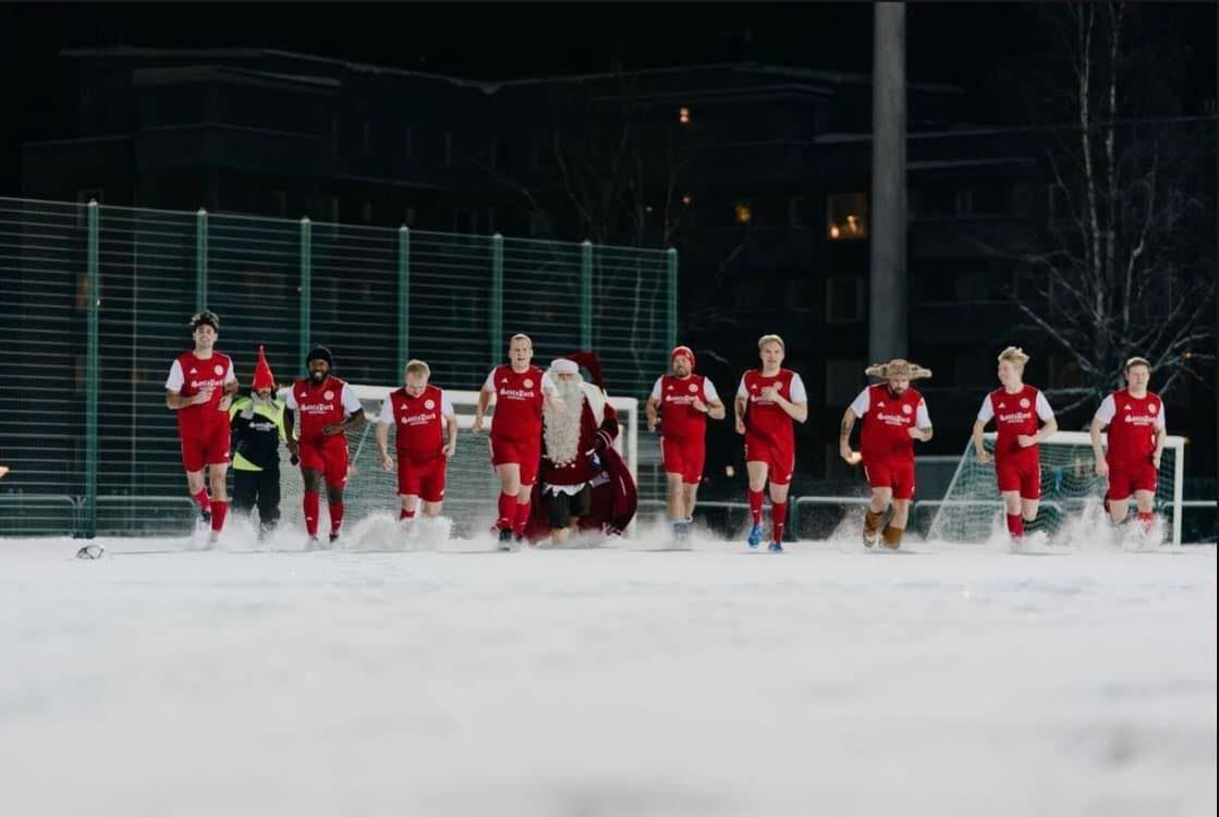 El club más navideño del mundo juega en la Kolmonen, la sexta división del futbol de Finlandia. Y vaya, basta echar un vistazo a sus redes sociales para darnos cuenta de lo modesta que es esa división y el equipo en sí. Claro, la nieve no falta en algunos de sus partidos.