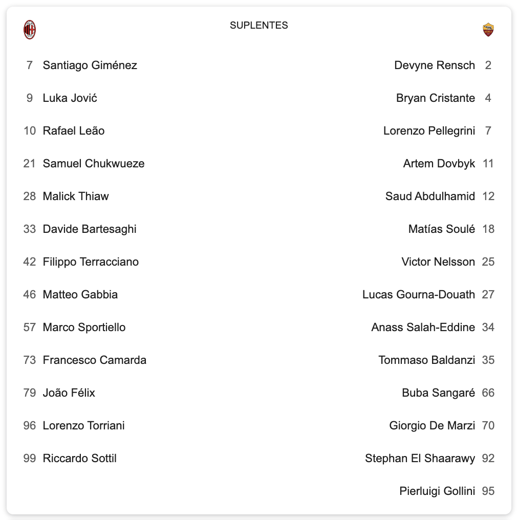 De acuerdo con las redes sociales del equipo italiano, el mexicano no está en los once titulares. Sin embargo, si buscas el partido en Google, podrán ver que Santi Giménez está en la banca para su posible debut con el Milán.