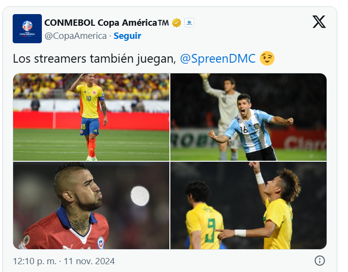 Las críticas se hicieron más grandes luego de una publicación en la cuenta oficial de X de la Copa América, con una foto donde aparecen James Rodríguez, el Kun Agüero, Arturo Vidal y Neymar, foto acompañada del mensaje “Los streamers también juegan”, claramente en alusión a que todos esos jugadores le han entrado al mundo del streaming.