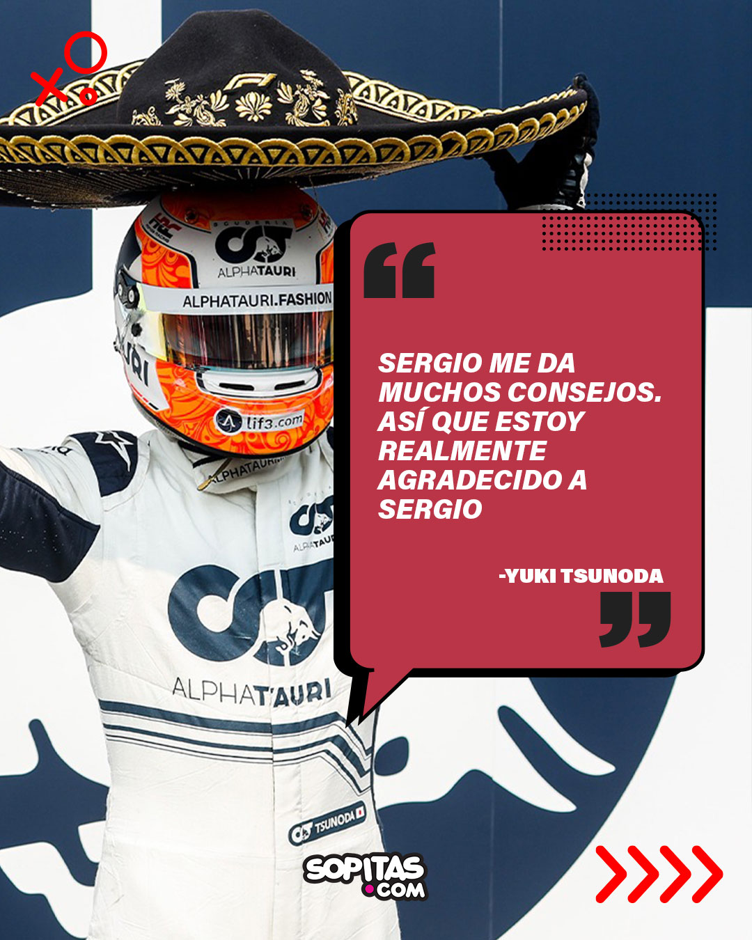 Tsunoda ha aceptado que ha aprendido de Checo Pérez gracias a la relación entre la escudería AlphaTauri y Red Bull, sobre todo en el primer año. “Sergio me da muchos consejos. Después de Francia o Mónaco (2021), cuando tuve un mal fin de semana, me mandó un mensaje con algunas palabras positivas para mí y consejos y eso me motiva, así que estoy realmente agradecido a Sergio“.