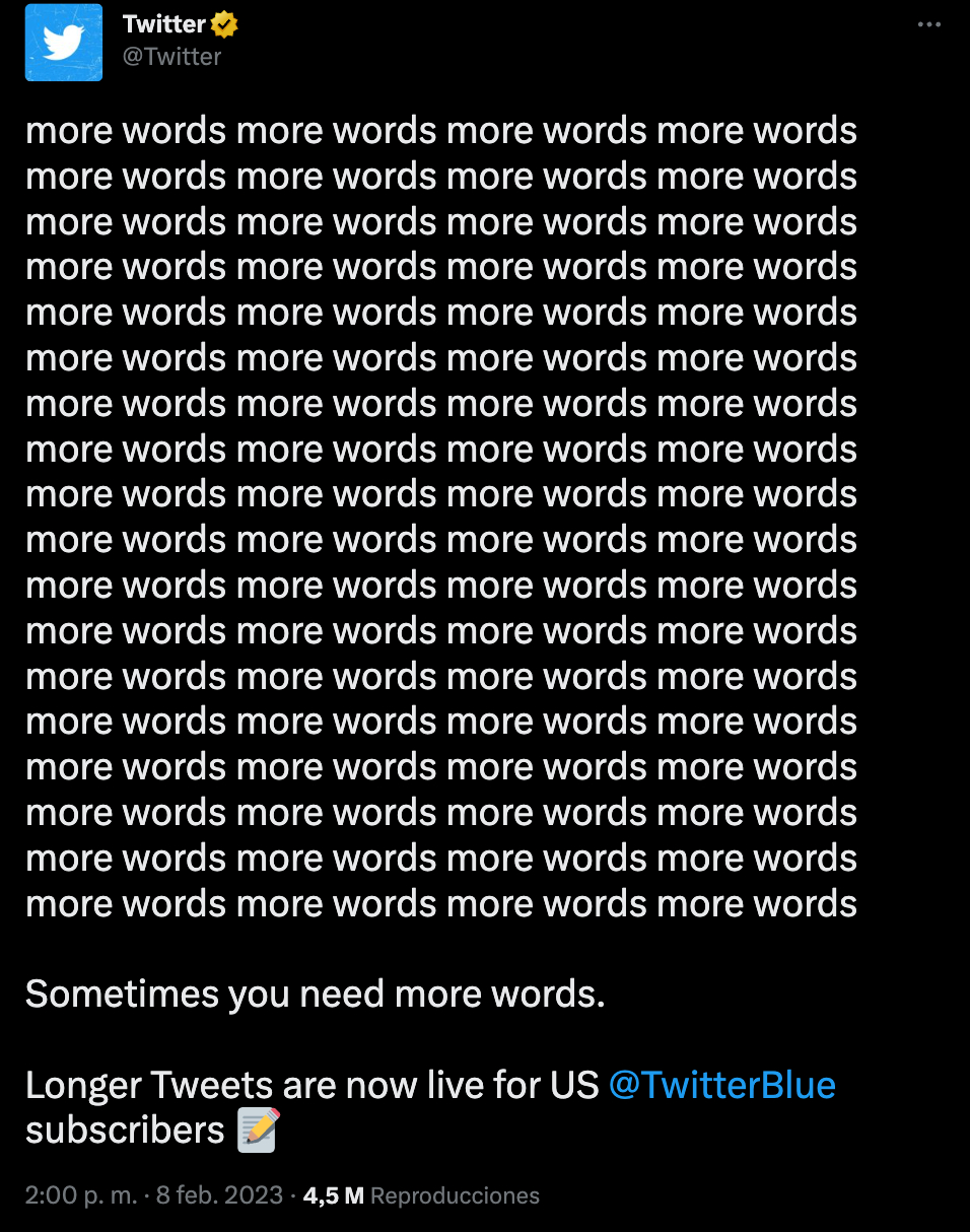 Obviamente esto ha llevado a algunos a escribir biblias en texto que bien pudimos ver en plataformas como Facebook e Instagram. Así que ahora Twitter no se distingue de otras con nada y no sólo eso, sino que le ha quitado a las personas la capacidad de resumir mensajes que muchas veces sólo son importante para ellos.