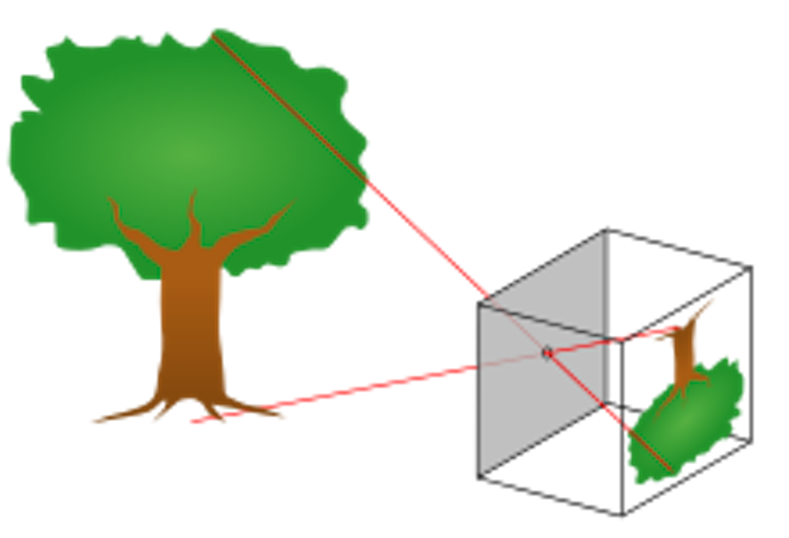 ¿Por qué pasa eso? Por que la luz viaja en línea recta y los rayos de luz, que provienen de distintos ángulos, pasan a través del mismo agujero.