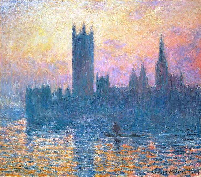 Su intención no era pintar el famoso recinto, sino la forma en la que luz lo atravesaba. La forma poética en la que las luces y las nubes cruzaban el Río Támesis y como la estructura se retrataba fugazmente en el agua.