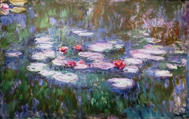 He aquí la pieza más famosa de Monet. Se trata de una de las obras que Monet pintó durante los últimos 30 años de su vida, los que pasó en su asombroso Jardín de Giverny. Ésta en particular se basó en un estanque que había ahí, que estaba lleno de pequeñas flores de loto que flotaban en la superficie.
