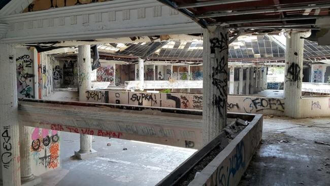 Con su arquitectura “vanguardista” tirándole a lo clásico o a lo kitsch, no podía dejar de llamar la atención de la gente. El lugar tiene a sus costados dos jardines que hoy están cubiertos con los restos del techo de la estructura que se ha ido cayendo.