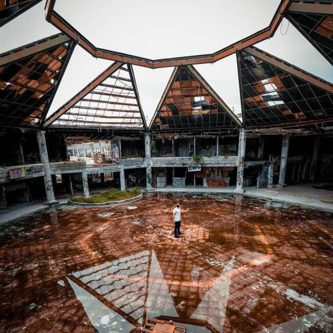 El favor de los dioses duró solo cuatro años. Pero todavía ahí, en la cima de la colina, podemos seguir admirando lo que pretendió ser un emporio comercial paradisiaco y que con el tiempo se convirtió en un lugar apocalíptico digno de una película de zombis, del género slasher o de Terminator.