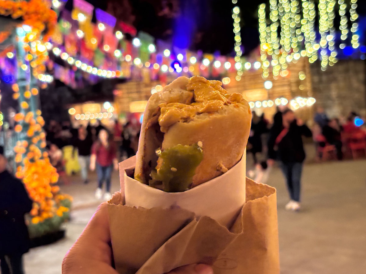 Recorrer las atracciones nos abrió el apetito así que nos lanzamos a descubrir las delicias culinarias que nos tiene preparadas Calaverandia en su zona de comida. Lonches, tacos, cortes de carne, churros, jericalla, tejuino y mucho mucho más. Todo está delicioso y es que la mayoría de los locales están conformados por negocios populares de Guadalajara, así que el sabor y calidad era de esperarse.