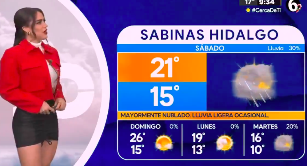 La cosa es que al hablar del clima para la localidad de Sabinas Hidalgo, en Nuevo León, la joven comenzó a titubear un poco sobre los cambios de clima que habría y ni ella entendió si iba a estar nublado o iba a hacer mucho calor en los próximos días.
