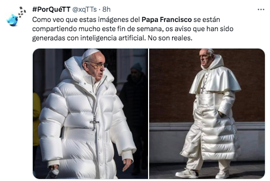 Y es que estas imágenes del Papa Francisco se suman a otros casos donde la Inteligencia Artificial (IA) le juega chueco al ojo humano, ya que son millones las personas que creyeron reales estas fotos y nos ponen a pensar las medidas a tomar para no caer en fake news. ¿Qué les parece?