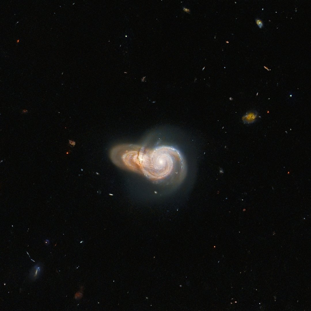 “A pesar de que parecen chocar en esta imagen, es probable que la alineación de las dos galaxias sea solo por casualidad: las dos en realidad no están interactuando”.