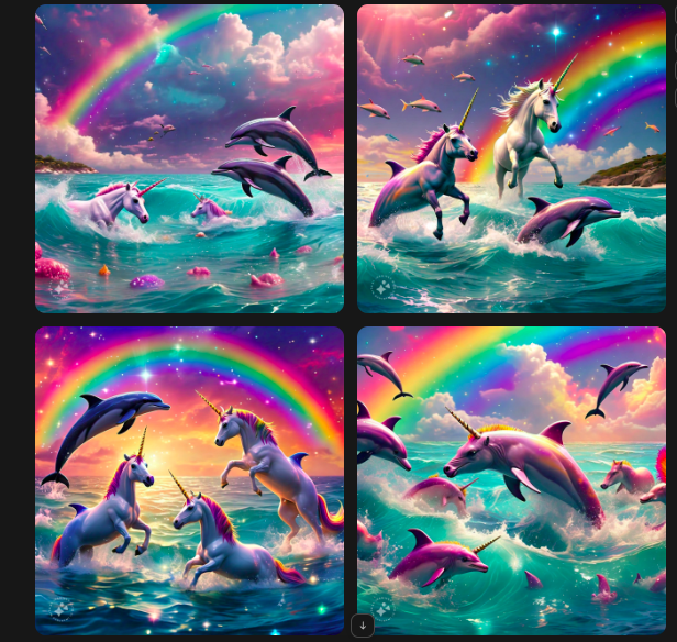 El cual consiste en imágenes de delfines y unicornios hechas con IA