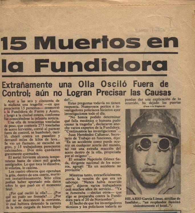 En 1971 ocurrió un suceso que cambió para siempre a la Fundidora de Fierro y Acero de Monterrey. El 20 de noviembre de aquel año, varios trabajadores de la planta transportaban una olla de acero fundido, dicha olla chocó contra una plataforma y se vaciaron unas 25 de las 275 toneladas del hierro fundido que se encontraba a una temperatura cercana a los 1600 grados centígrados, que alcanzó a 17 trabajadores.