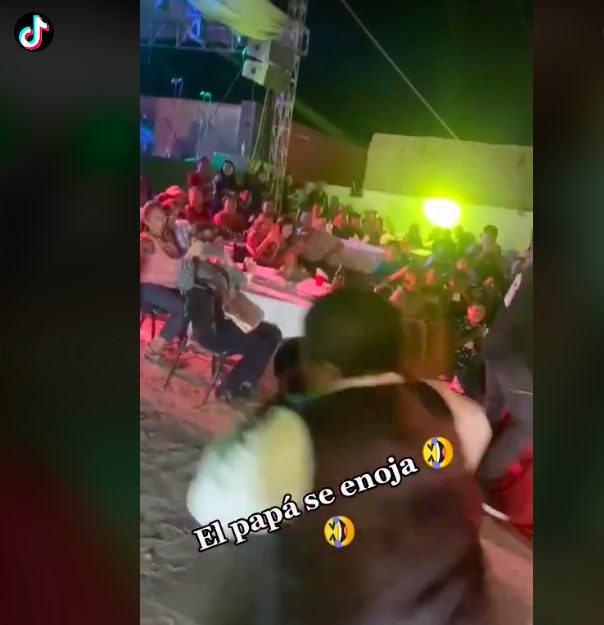 ¡Y ‘ámonos! Que enseguida sale el papá de la quinceañera con todo y sombrero a manotear porque de plano, no le agrado el bailecito que le andaban haciendo a su hija (con todo y que ella se veía bien sonriente). Y el asunto se pudo poner un poquito más intenso de no ser porque un sujeto salió a agarrar al papá de la quinceañera.