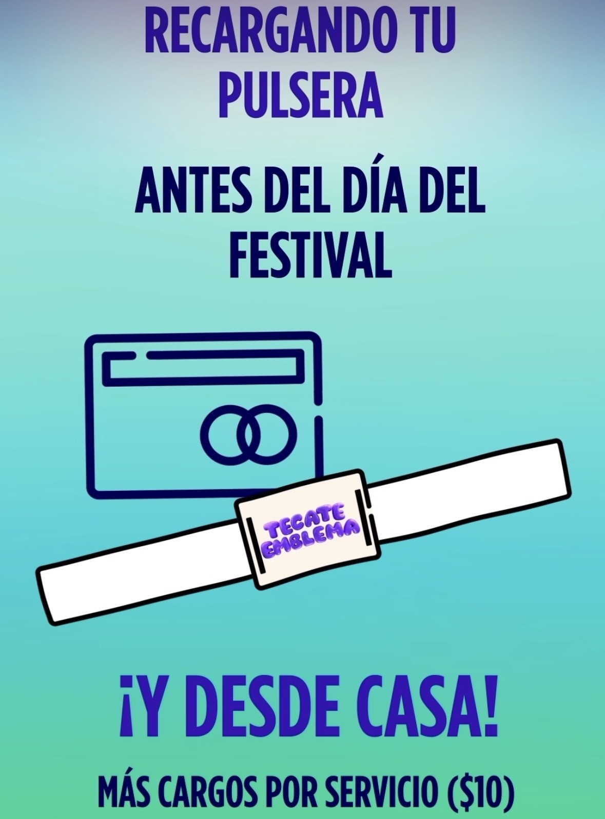 Lo único que deben hacer es entrar a ESTE ENLACE y seguir todo el proceso. Al final, el sitio les dará un código QR, el cual te escanearán en cualquiera de los puntos de recarga cashless de Tecate Emblema y ahí mismo te entregarán tu pulsera con el saldo que ingresaste.