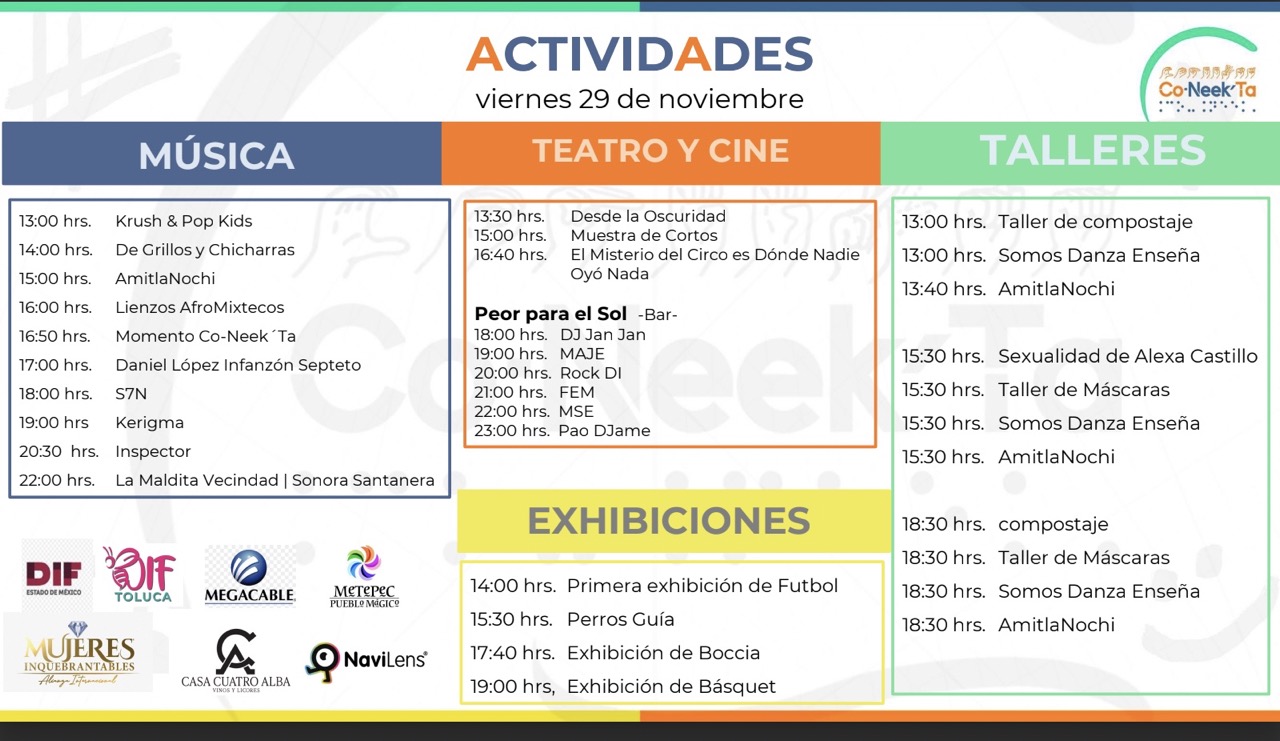 El festival Co-Neek’Ta se llevará a cabo el próximo 29 y 30 de noviembre en el Recinto Ferial de Metepec, en el Estado de México, y durante esos dos días las personas podrán disfrutar de varias actividades con las cuales buscan crear un entorno donde las personas puedan participar sin importar su edad, capacidad física o condición social.