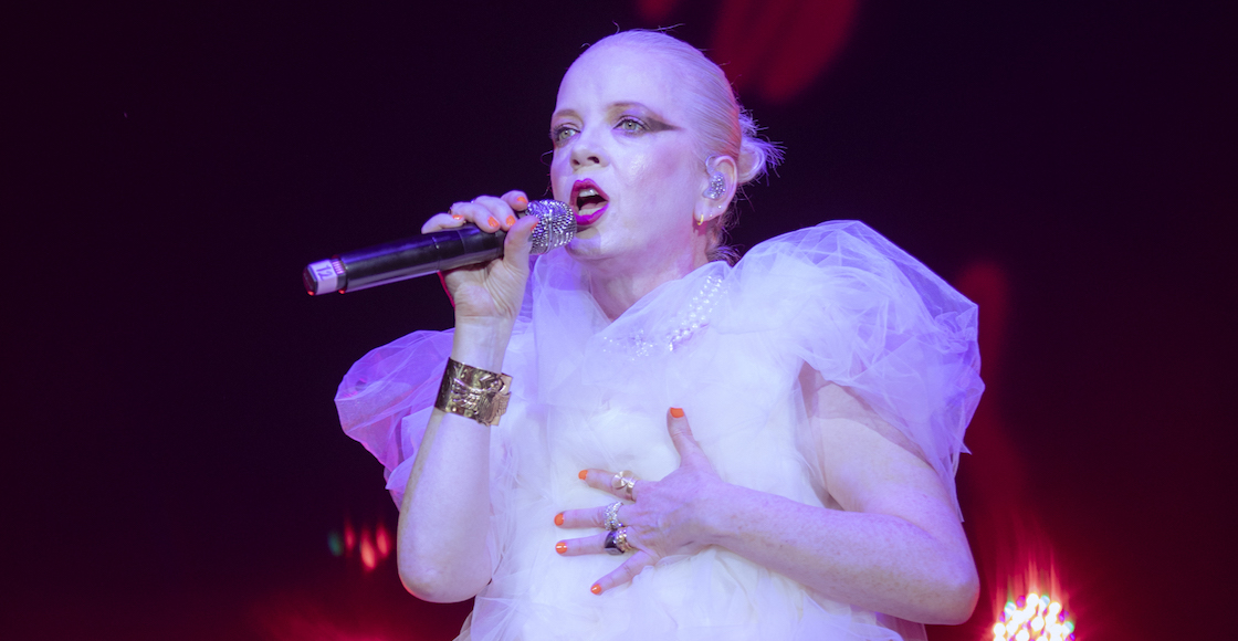 ¡Shirley Manson, maldita sea! Una mujer hermosa e imponente. Con sólo aparecer en el escenario, ya tenía al público en la bolsa. Y sí, “aparecer” es lo que mejor describe a la forma en la que la cantante se presentó ayer en el Pepsi Center: ataviada con un pomposo vestido blanco (tan blanco como su tono de piel), Manson fue una “aparición” que, con su voz, llevó a sus encantados fans de vuelta a los 90, para luego aventarlos a los dos miles y después colocarlos en el pesado presente.