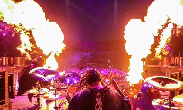 Nos resultó inevitable no recordar cómo fue que Jay se convirtió en baterista de Slipknot. Él era un gran fan de la banda desde niño, ya que fue a uno de sus conciertos a principios de los 2000 y se tomó una foto con los integrantes de entonces, foto que recreó años después, en el 2019, ya como baterista de Slipknot.
