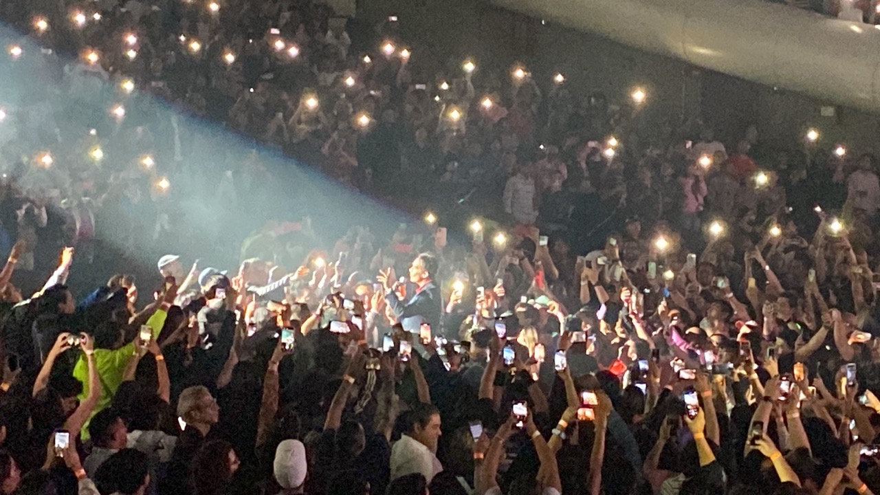 La fiesta estaba en su punto más alto y era momento de ‘sacar los prohibidos’ con un clásico… así llegó “Bailando solo”, con todo y una bola disco colgando del techo en el show de Los Bunkers en el Auditorio Nacional.