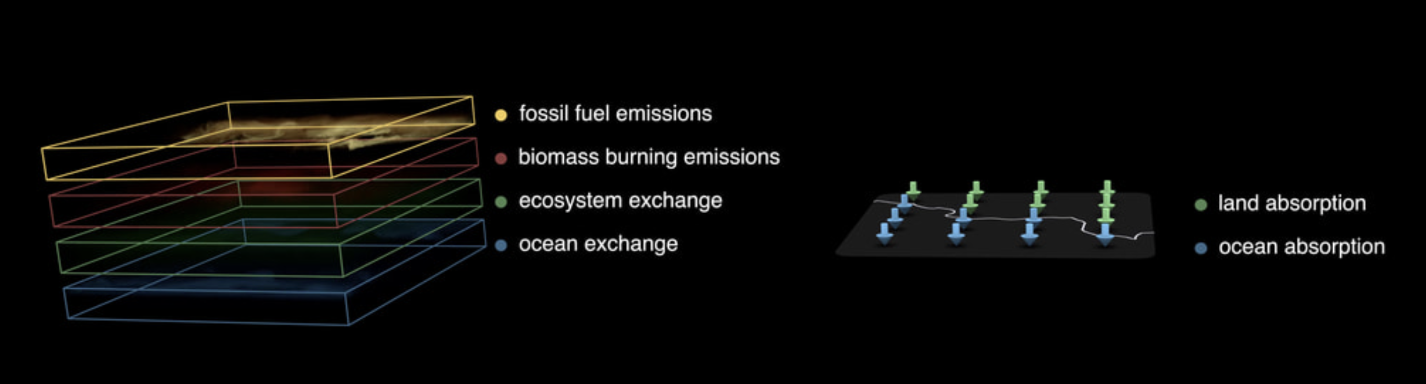 Lo parpadeando en verde son los momentos en que el Amazonas absorbe un poco de las emisiones durante el día. Lo que está parpadeando en azul son los océanos intentando hacer lo propio.