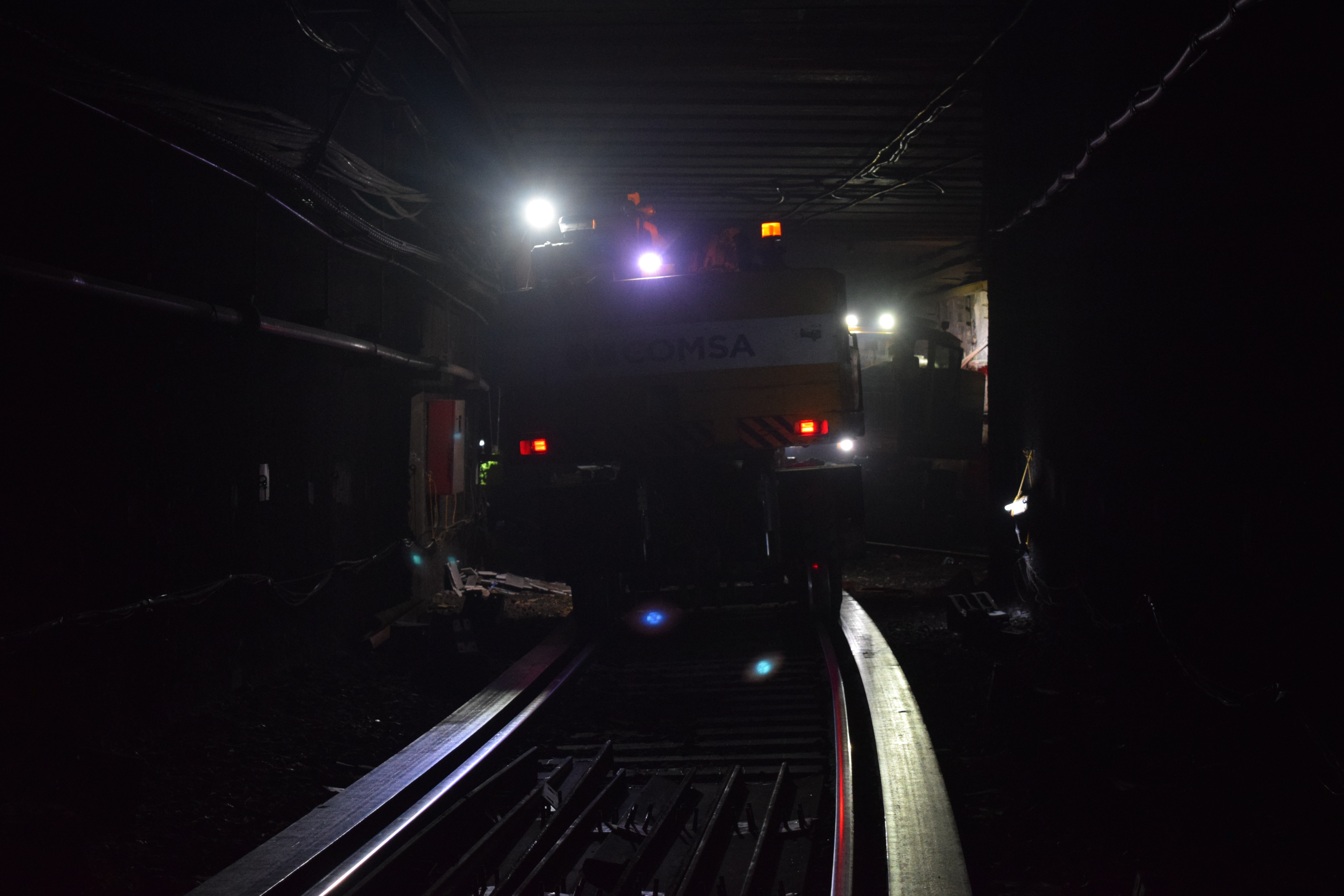 Esta fase inicial en la que se encuentra el proyecto es la de desmonte, es decir, están quitando la mayoría de elementos de los túneles para después poder comenzar la instalación de los nuevos: las barras guía, el balasto (las piedritas), todo el cableado, etc.