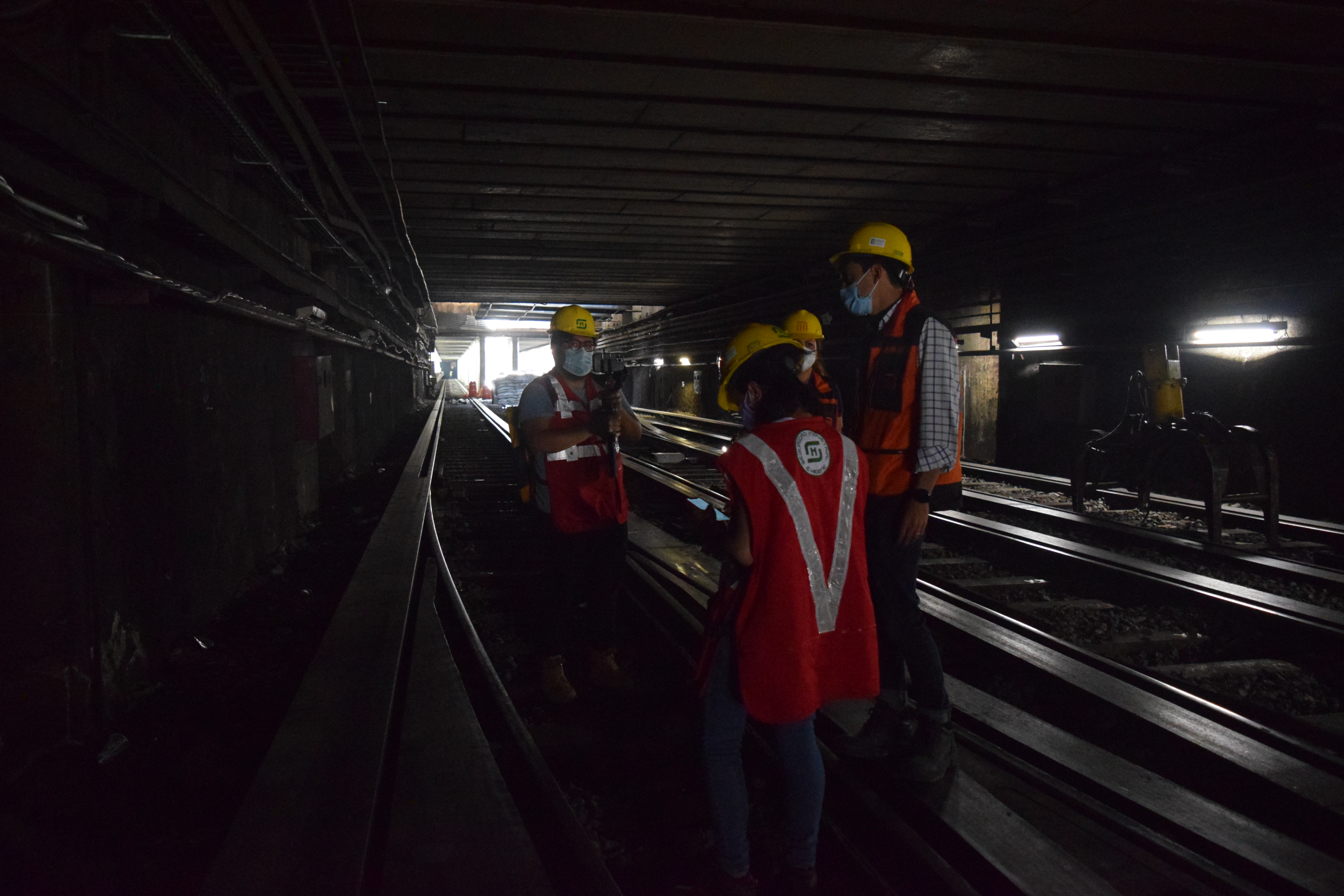 Después de ponernos los chalecos y los cascos de seguridad bajamos con mucho cuidado a un tramo del túnel de la estación Salto del Agua. Siempre estuvimos acompañados de elementos de seguridad industrial que nos daban indicaciones para no tener un accidente.