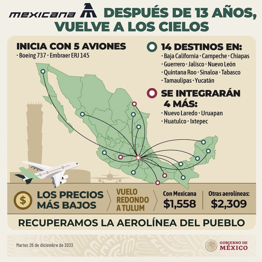 Y, bueno, mientras estas conversaciones llegaban a las redes, el gobierno de México publicó una infografía sobre los detalles de Mexicana de Aviación. Ya saben, su flota de aviones, qué destinos manejan y manejarán. Los precios y sus comparativos con otras aerolíneas.