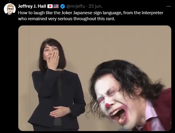 De hecho, el caso de Uchino Airi no fue el único. Por ahí el Dr. Jeffrey J. Hall compartió en redes que también apareció un pseudo Joker que, al dar su discurso público, lo único que hizo fue reírse frente a la cámara y decir que, así como está Tokio, lo único que puede es eso… reírse. Ahhh y que no le gustaban las dinastías políticas.