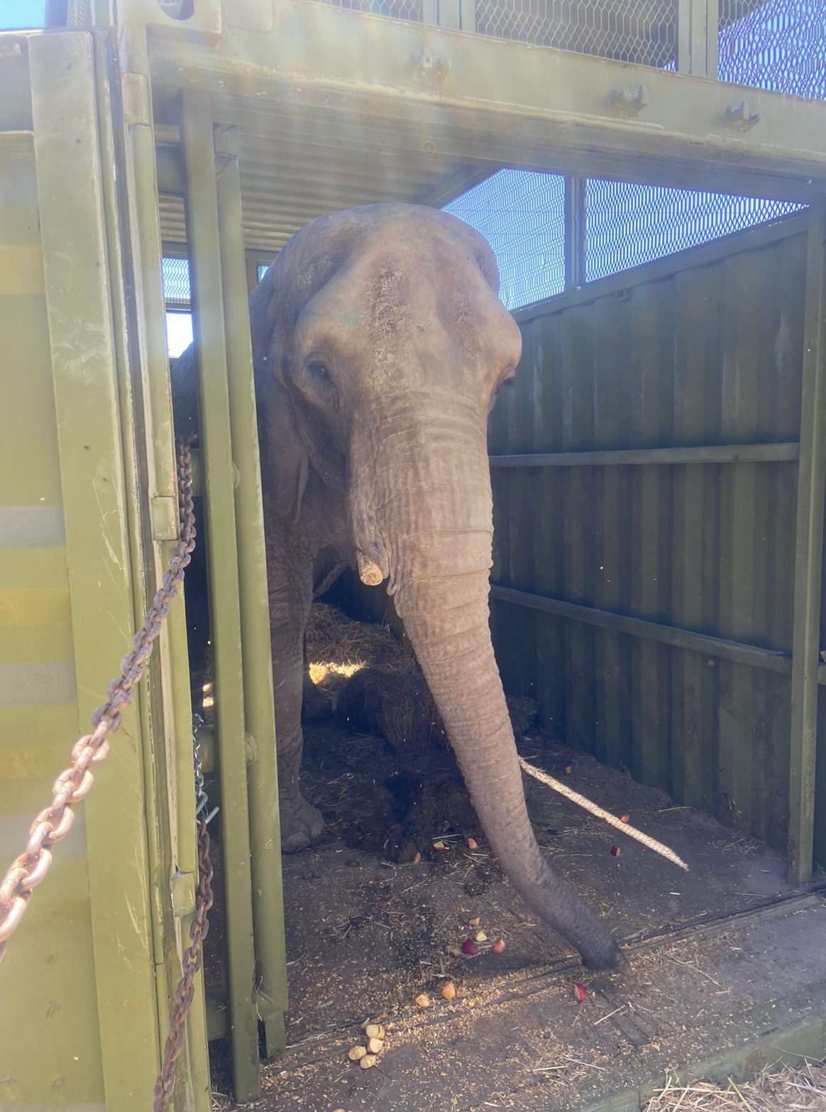 Afirman que el proceso comenzó este miércoles con la colocación de un contenedor de acero de 2.44 metros de ancho por 3.60 metros de alto y 6.07 metros de largo para que la elefanta pudiera familiarizarse con él.