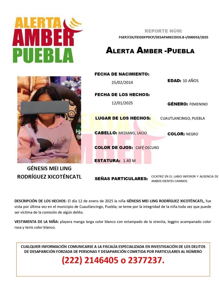 Cinco días después de que encontraran su cuerpo sin vida, este lunes 20 de enero la Fiscalía de Puebla confirmó la detención de Luis Ángel N, a quien señalan de ser el presunto feminicida de la niña Génesis Mei Ling, de 10 años de edad.