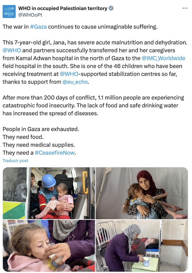 Entonces, ya se darán una idea de los horrores de la guerra que está viviendo la población civil en Gaza —donde se han identificado cuerpos carbonizados, incluyendo los de niños—, lo que ha llevado a la OMS a pensar que las cifras de personas muertas, desaparecidas y heridas pueden ser mayores.