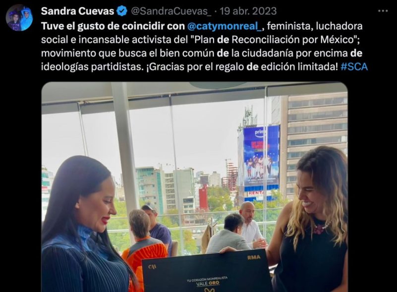 Para nadie es un secreto que hay una estrecha relación entre Ricardo Monreal y Sandra Cuevas; así que más que confrontación, lo de Caty Monreal y Sandra Cuevas pinta para ser un pase de mando… claro, en caso de que gane la hija de Ricardo Monreal.