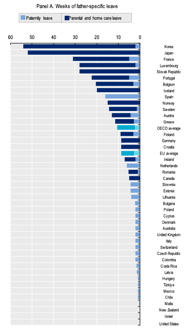 Por ejemplo, en Corea del Sur y en Japón se ofrece más de 50 semanas como licencia de paternidad. Se trata de un mix entre la licencia de paternidad tras el nacimiento del hijo y una licencia de cuidado en casa, que por cierto no existe en México.