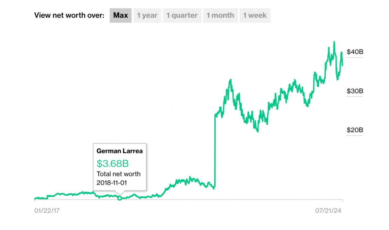 Germán Larrea de Grupo México ocupa el lugar número 41 de la lista con una fortuna actual de 37.8 mil millones de dólares.