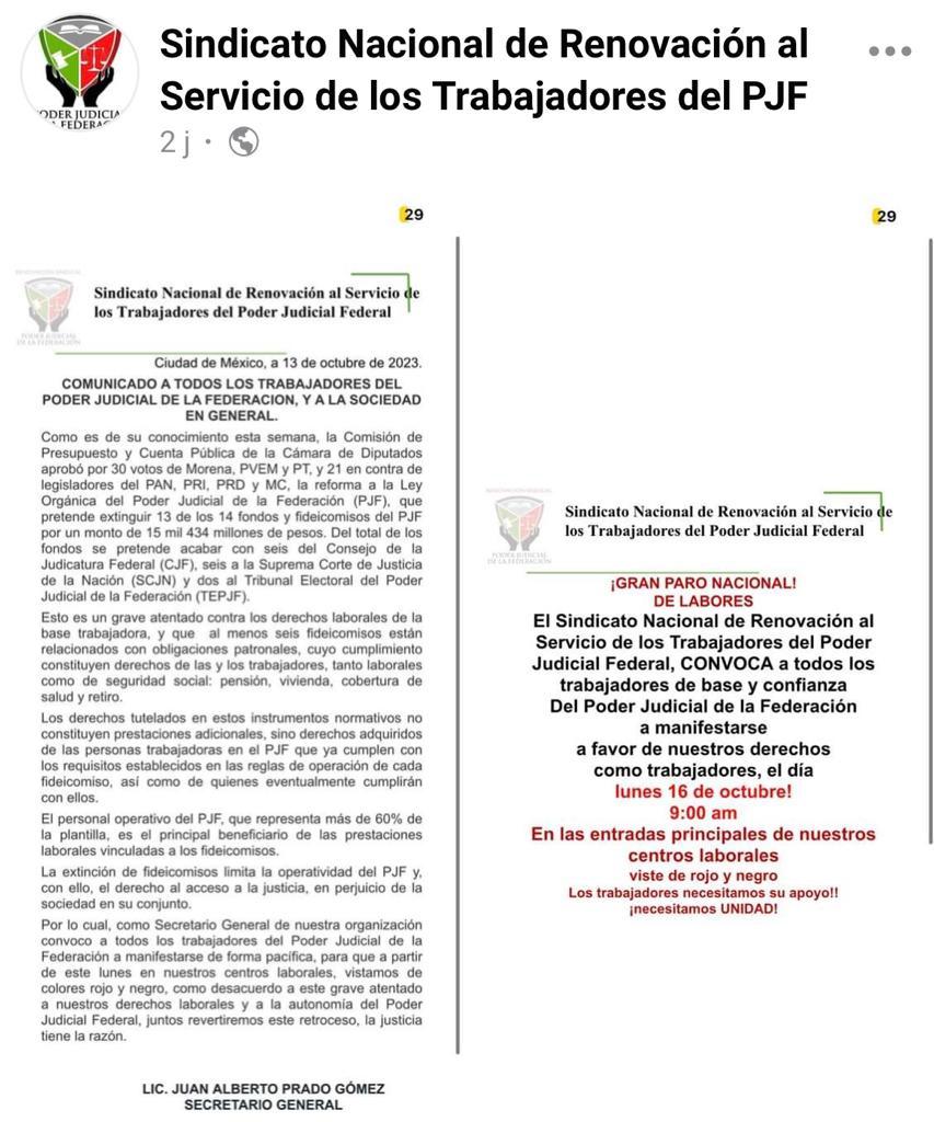 Y llegamos a las protestas y el paro de los trabajadores del Poder Judicial, que fueron convocados por el Sindicato Nacional de Renovación al Servicio de los Trabajadores del PJ.